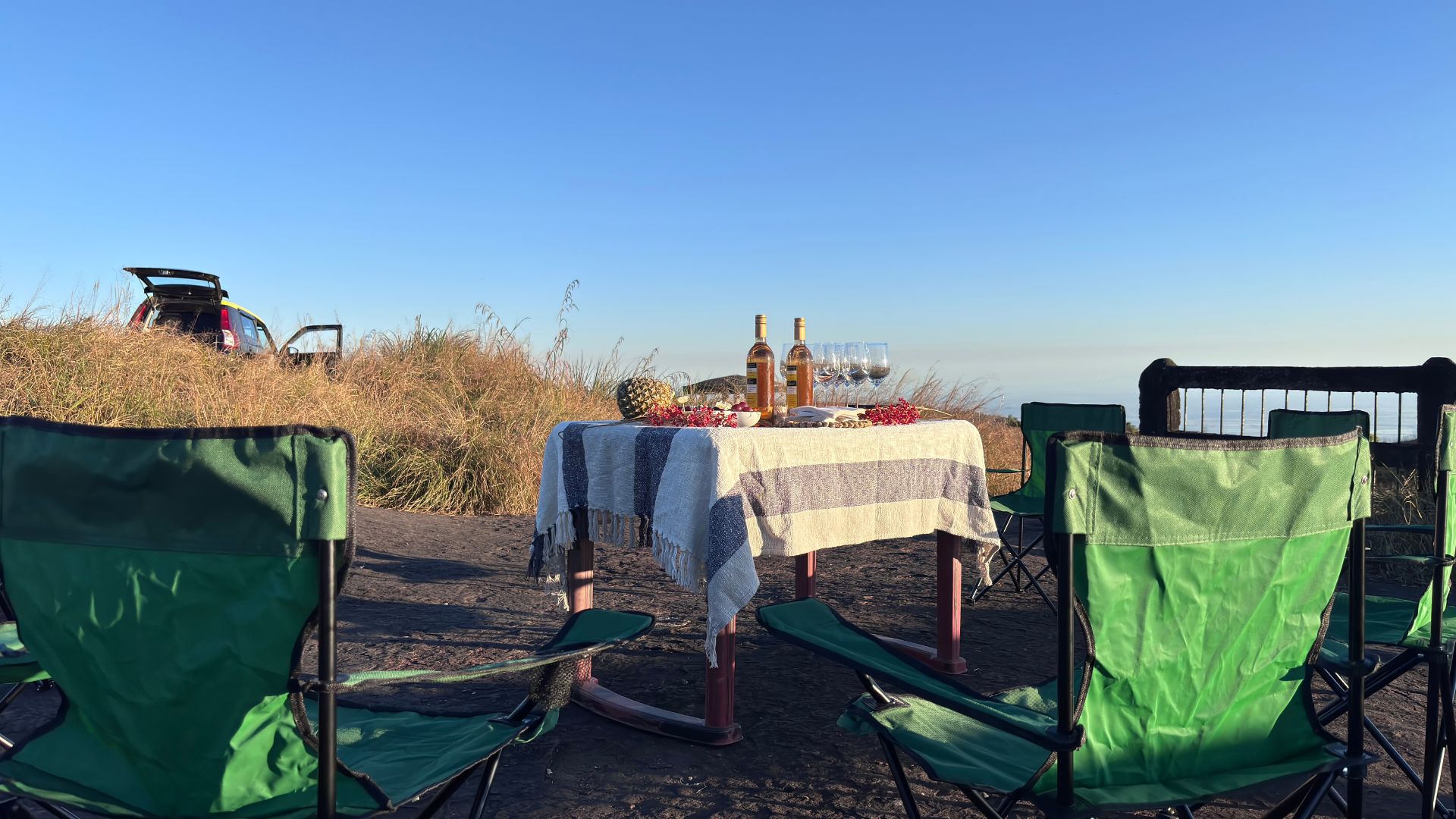 The tasting session and walk take place in Mawphlang, right at the entrance of the Sacred Grove. The set-up is outdoors amidst forest views, and the guided walk includes the monoliths and the Sacred Forest trail.